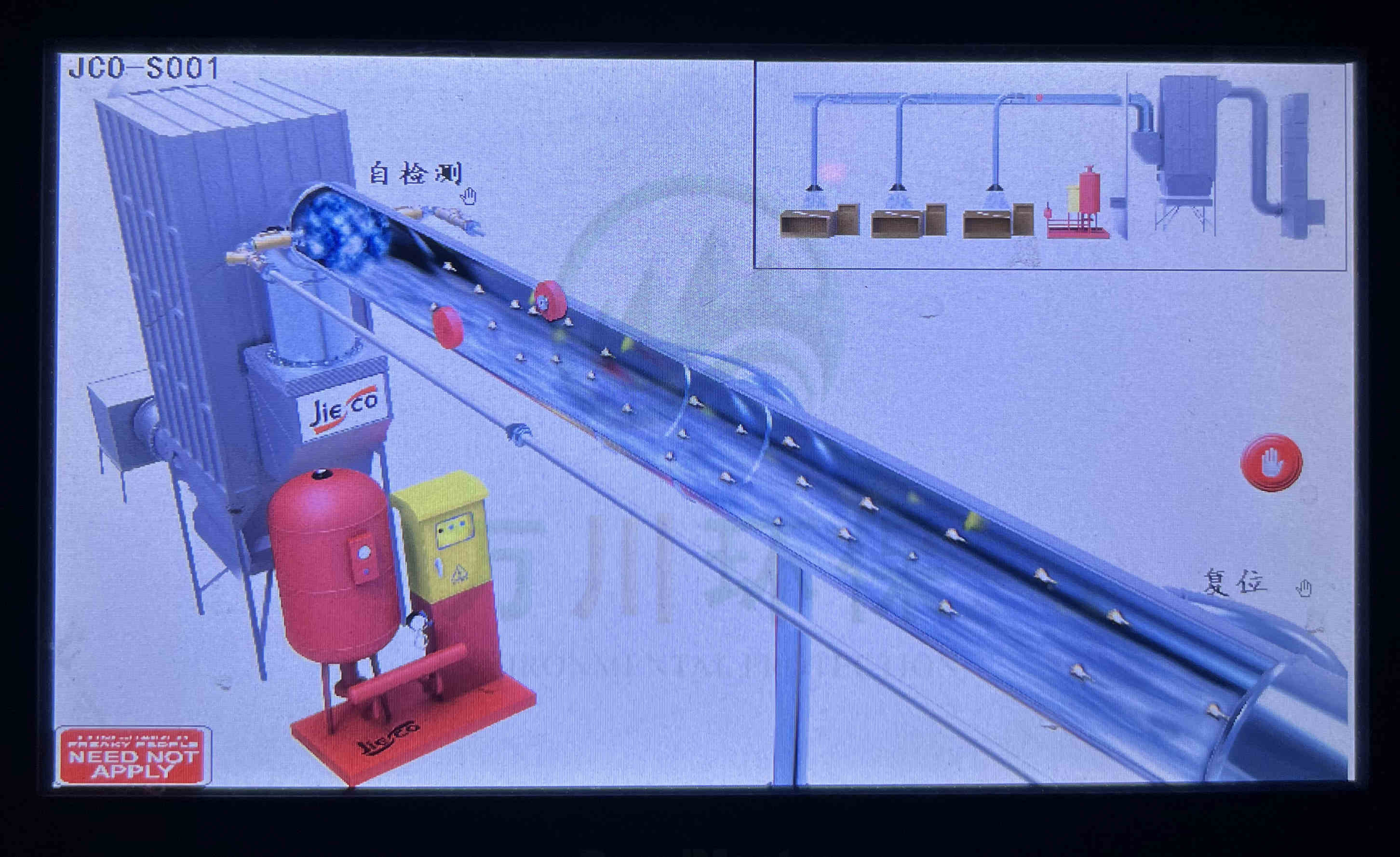 (萬川環(huán)保布袋除塵器配套電控系統(tǒng) 一鍵啟停操作方便快捷,簡(jiǎn)單穩(wěn)定)                            (萬川布袋除塵器配套消防噴淋管路,為安全運(yùn)行保駕護(hù)航)