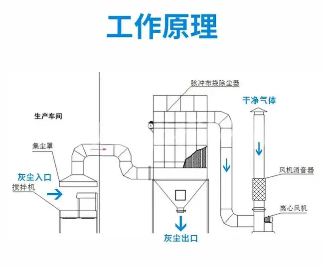 脈沖濾筒除塵器具有體積小、效率高等優(yōu)點(diǎn)。當(dāng)含塵氣體由進(jìn)風(fēng)口進(jìn)入除塵器后,氣流速度減慢,粗顆粒脫離氣流沉降到集塵室內(nèi),細(xì)微粉塵隨氣流穿過濾筒時被阻于濾筒外表面,潔凈氣體由出風(fēng)口排出;當(dāng)濾筒表面灰層較厚時,脈沖控制儀發(fā)出指令開啟噴吹閥,氣包內(nèi)的壓縮空氣經(jīng)噴吹管高速噴出,同時誘導(dǎo)數(shù)倍于噴射氣量的周圍空氣進(jìn)入濾筒,并由內(nèi)向外快速射出,將濾筒外表面的粉塵吹下落入集塵室內(nèi),后由放灰斗排出。