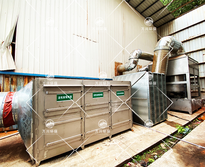 有機(jī)廢氣凈化流程:由于噴漆廢氣中含有一定的顆粒物,因此首先進(jìn)到水簾柜和噴淋塔在進(jìn)一步除去顆粒物和水溶性物質(zhì),而后進(jìn)入到除霧器,過(guò)濾未完全凈化水分,而后進(jìn)入活性炭吸附,該法具有處理效果高,運(yùn)行穩(wěn)定優(yōu)點(diǎn)。