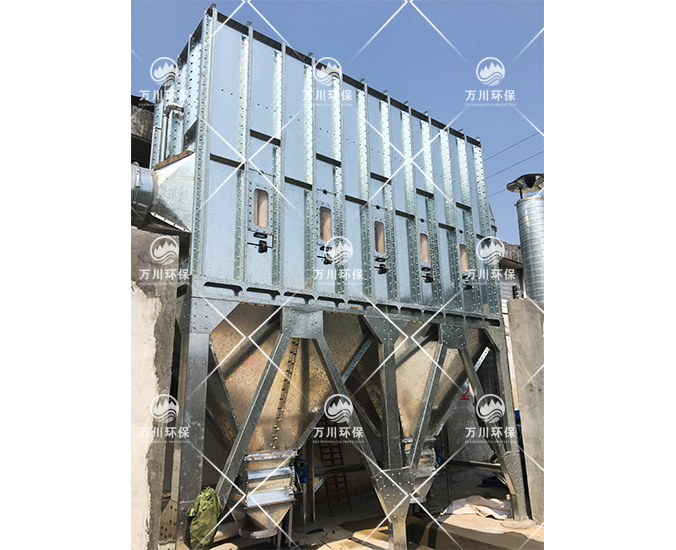 木屑吸入至風(fēng)管,以負壓的形式進入到脈沖布袋除塵器。含塵廢氣進入中箱體下部,在擋風(fēng)板形成預(yù)分離室內(nèi),粉塵因慣性作用落入灰斗。