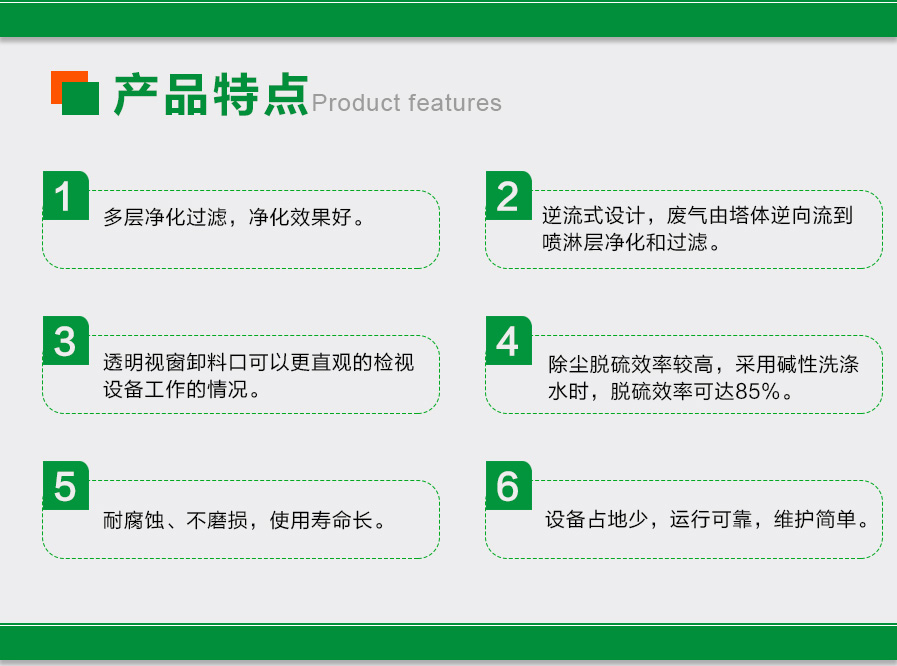 簡(jiǎn)介:  噴淋塔(俗稱:水淋塔)是一種處理煙塵廢氣的濕式環(huán)保設(shè)備,可適用于發(fā)電廠燃燒煙塵、鋼鐵廠、鍋爐燃燒、垃圾燃燒等煙塵廢氣處理,這類的煙氣粉塵容易溶于水,噴淋塔是處理這類煙氣粉塵的不二之選。煙氣粉塵從塔底進(jìn)入塔內(nèi),塔內(nèi)有填料支撐板,噴淋塔從塔頂噴出液體,液體均勻的分布在塔內(nèi)和污染物充分接觸,達(dá)到凈化的效果,最后塔頂排出。