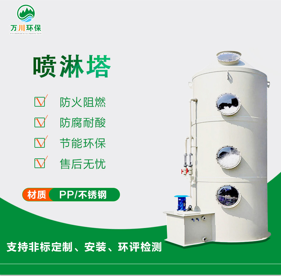 噴淋塔(俗稱:水淋塔)是一種處理煙塵廢氣的濕式環(huán)保設(shè)備,可適用于發(fā)電廠燃燒煙塵、鋼鐵廠、鍋爐燃燒、垃圾燃燒等煙塵廢氣處理,這類的煙氣粉塵容易溶于水,噴淋塔是處理這類煙氣粉塵的不二之選。煙氣粉塵從塔底進(jìn)入塔內(nèi),塔內(nèi)有填料支撐板,噴淋塔從塔頂噴出液體,液體均勻的分布在塔內(nèi)和污染物充分接觸,達(dá)到凈化的效果,最后塔頂排出。