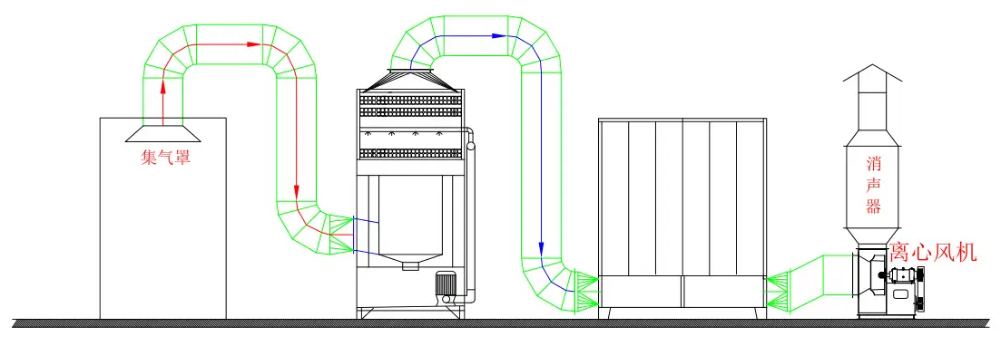 1、根據(jù)企業(yè)實際情況量身定做,包括需要的風(fēng)量與動力,管道的走向,集氣罩等配置。