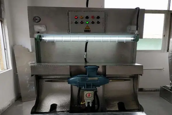 首先考慮到金屬粉塵的爆炸性,對于易燃易爆金屬產(chǎn)生的粉塵不得不重視,所以使用的是濕式除塵法+打磨工作臺。濕式除塵法包括水簾式打磨柜。旋流板噴淋塔。這兩種設(shè)備在打磨拋光粉塵處理中使用的最為廣泛。不僅僅是設(shè)備的效率高,更為重要的是設(shè)備的防爆性能。
