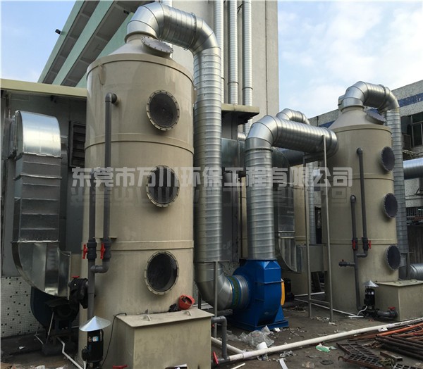 根據(jù)氨氣具有易溶于水的特點(diǎn),氨氣可以使用噴淋塔處理。氨氣廢氣從風(fēng)管進(jìn)入噴淋塔,經(jīng)過(guò)噴淋層,噴淋頭不斷的向下噴水,由下到上不間斷地噴水,氨氣的濃度越來(lái)越低,最后達(dá)標(biāo)排放,收集起來(lái)的氨水還可以重新利用。